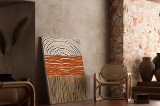 Tableau Coloré – Soleil d’Argile | Affiche Paysage Stylisé Terre Cuite et Tons Naturels | Déco Bohème pour Salon ou Chambre