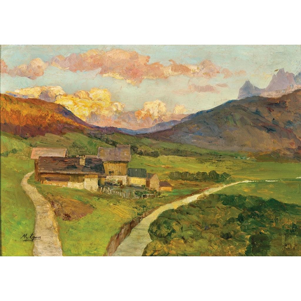 Dans cette œuvre, Egner dépeint un paysage montagnard au crépuscule, où les ombres et la lumière se rencontrent de manière poétique. Cette œuvre évoque un moment de tranquillité et de contemplation, permettant au spectateur de se connecter à la beauté naturelle. À sa sortie, elle a suscité un intérêt croissant pour le symbolisme, prouvant que l'art peut transcender le simple visuel pour toucher l'âme.