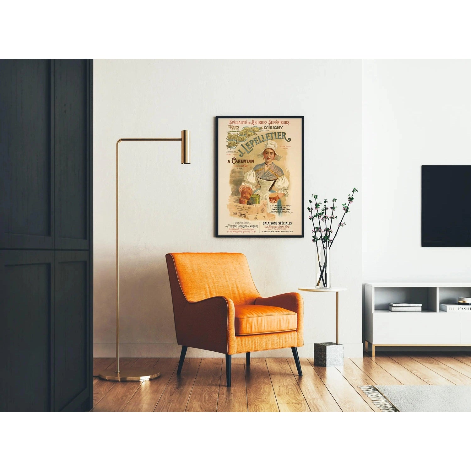 Offrez à vos murs le charme authentique des réclames d’époque avec cette affiche publicitaire vintage consacrée au beurre d’Isigny de la maison J. Lepelletier.