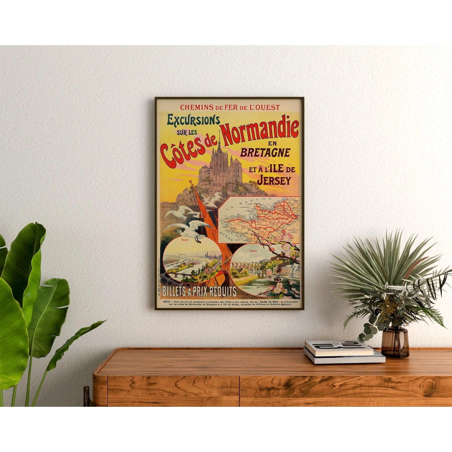 Description : Revivez le charme de l'époque dorée du voyage avec cette reproduction fidèle de l'affiche vintage "Excursions en Normandie et Bretagne". , Cette œuvre d'art intemporelle capture l'essence du tourisme classique français avec une invitation nostalgique à explorer les côtes pittoresques de la Normandie et de la Bretagne, ainsi que l'île de Jersey.