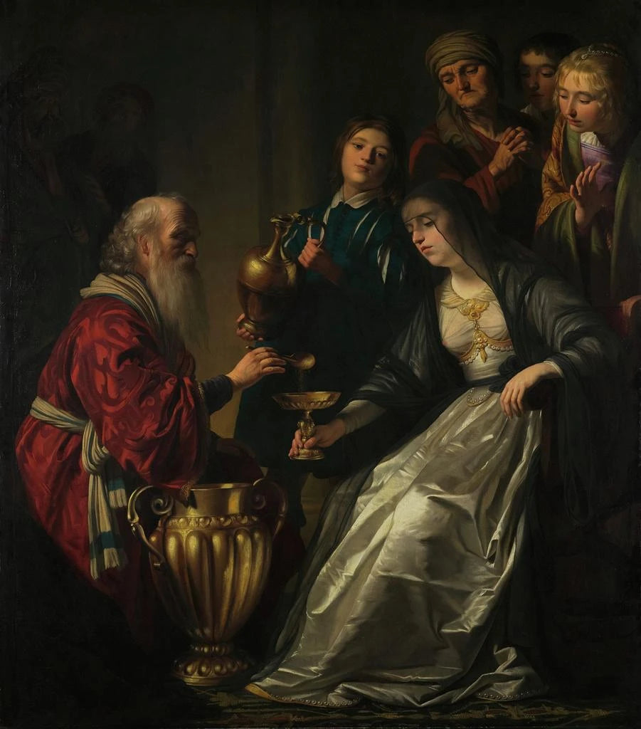 Le style de Honthorst se distingue par son approche baroque, caractérisée par des contrastes saisissants entre lumière et obscurité, une technique souvent désignée sous le terme de clair-obscur. Dans "Artemisia", la lumière semble émaner de l'intérieur même du tableau, illuminant le visage de la protagoniste tout en plongeant le reste de la composition dans une douce pénombre. Cette utilisation habile de la lumière non seulement accentue le drame de la scène, mais met également en avant les détails minutieux des vêtements et des expressions. La posture d'Artemisia, à la fois forte et vulnérable, témoigne de la complexité de son personnage, tout en reflétant les luttes et les triomphes des femmes de son époque. Honthorst parvient ainsi à créer une atmosphère à la fois intime et universelle, où le spectateur est invité à s'interroger sur le rôle de l'artiste et la nature de l'inspiration.