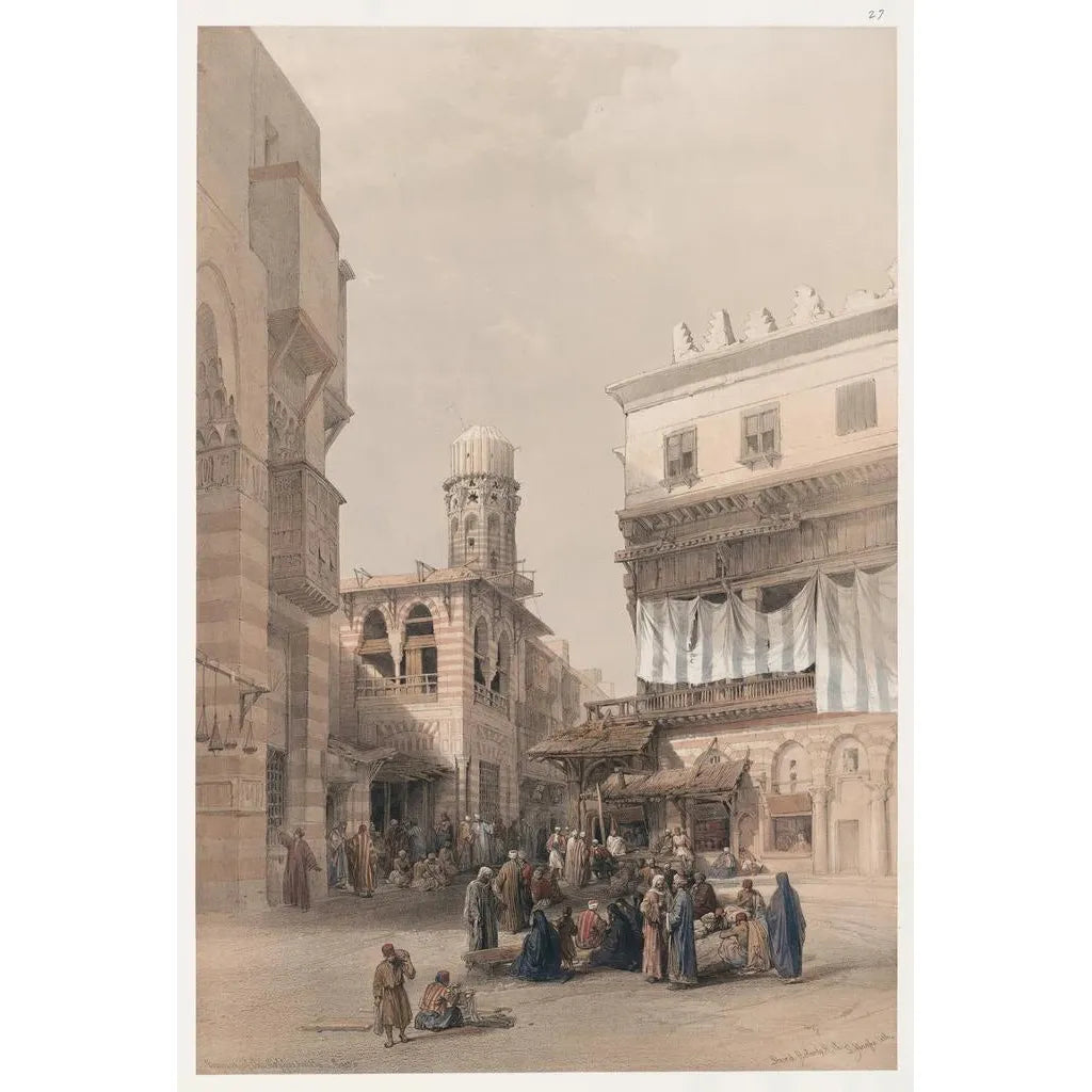 David Roberts, peintre écossais du XIXe siècle, est reconnu pour ses œuvres qui illustrent les paysages et les cultures orientales. Influencé par le mouvement romantique, il a voyagé à travers le Moyen-Orient, documentant ses découvertes avec une précision remarquable. Ses œuvres, comme "Bazar des chaudronniers Le Caire", témoignent de son intérêt pour l'Orientalisme, un style artistique qui a émergé à cette époque, mêlant fascination et exotisme. Roberts a su capturer l'essence des lieux qu'il a visités, offrant ainsi un aperçu précieux de la vie quotidienne et des traditions de ces régions, tout en influençant de nombreux artistes contemporains.