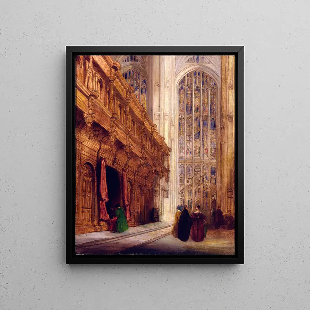 La chapelle du King's College à Cambridge est un chef-d'œuvre de l'architecture gothique, un lieu où l'histoire et la spiritualité se rencontrent. La reproduction Chapelle du King's College Cambridge - David Roberts nous transporte dans cet espace sacré, révélant la splendeur de ses voûtes élancées et de ses vitraux colorés. À travers le prisme de l'art, David Roberts capture l'essence même de cet édifice emblématique, invitant le spectateur à contempler non seulement la beauté architecturale, mais aussi l'atmosphère unique qui règne en ces lieux. La lumière filtrée par les vitraux, les détails minutieux des sculptures, tout cela s'anime sous le pinceau de cet artiste, offrant une vision immersive de la chapelle.