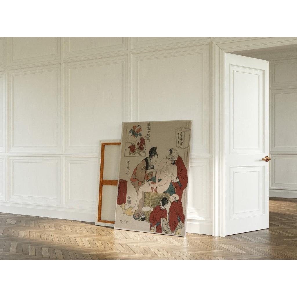 En intégrant une reproduction de cette œuvre dans votre décoration intérieure, vous n’ajoutez pas seulement une pièce d'art, mais également une source d'inspiration quotidienne. Chaque fois que vous poserez les yeux sur cette reproduction, vous serez transporté dans le monde riche et complexe de Kitagawa Utamaro, célébrant le beau et l'émouvant dans votre espace de vie.