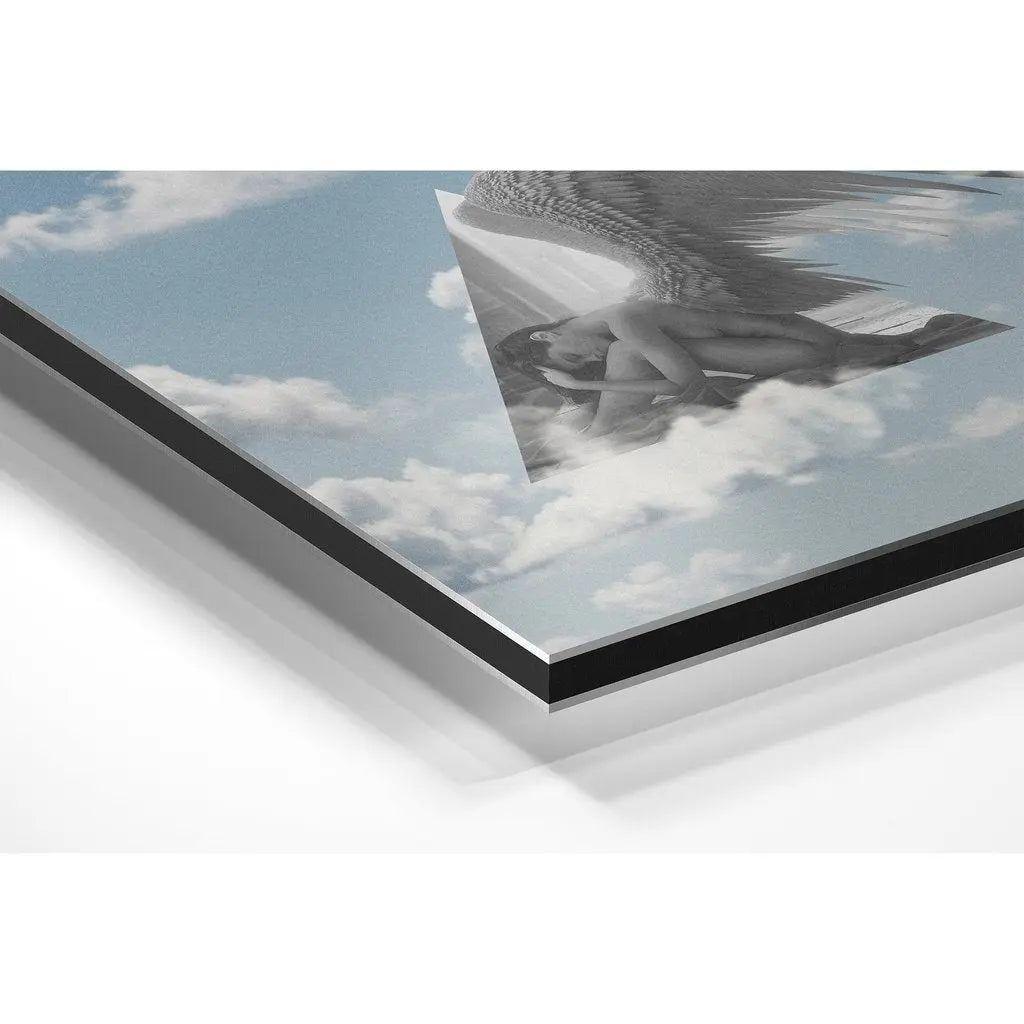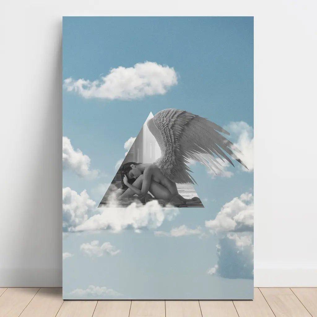 Découvrez 'Évasion Céleste en Triptyque', une reproduction d'art fascinante qui capture la beauté surréaliste d'un moment suspendu entre rêve et réalité. Cet art visuel saisissant présente une silhouette angélique en noir et blanc, lovée dans un écrin de nuages, vue à travers une ouverture triangulaire. Le contraste frappant entre la figure paisible et le ciel azur évoque des émotions de tranquillité et de contemplation profonde. Imprimée sur un matériau de haute qualité, cette pièce ajoutera une touche d'élégance et de mystère à tout espace. Parfaite pour ceux qui cherchent à embellir leur intérieur avec une œuvre qui invite à la réflexion et à l'évasion.
