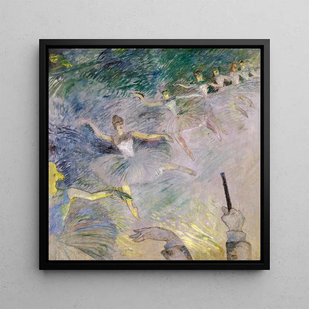 Artiste central de la fin du XIXe siècle, Henri de Toulouse-Lautrec a renouvelé la représentation de la vie parisienne par son sens du portrait social et sa maîtrise de l’affiche. Influencé par le post-impressionnisme et par l’art japonais, il privilégie la simplification du trait, la composition audacieuse et la mise en scène des personnages. Ses lithographies et peintures ont documenté les cabarets, les théâtres et les coulisses avec une acuité psychologique rare, faisant de chaque œuvre un témoignage visuel de son époque. Le tableau Danseurs de ballet s’inscrit dans cette veine: une observation attentive portée par une esthétique à la fois populaire et raffinée.