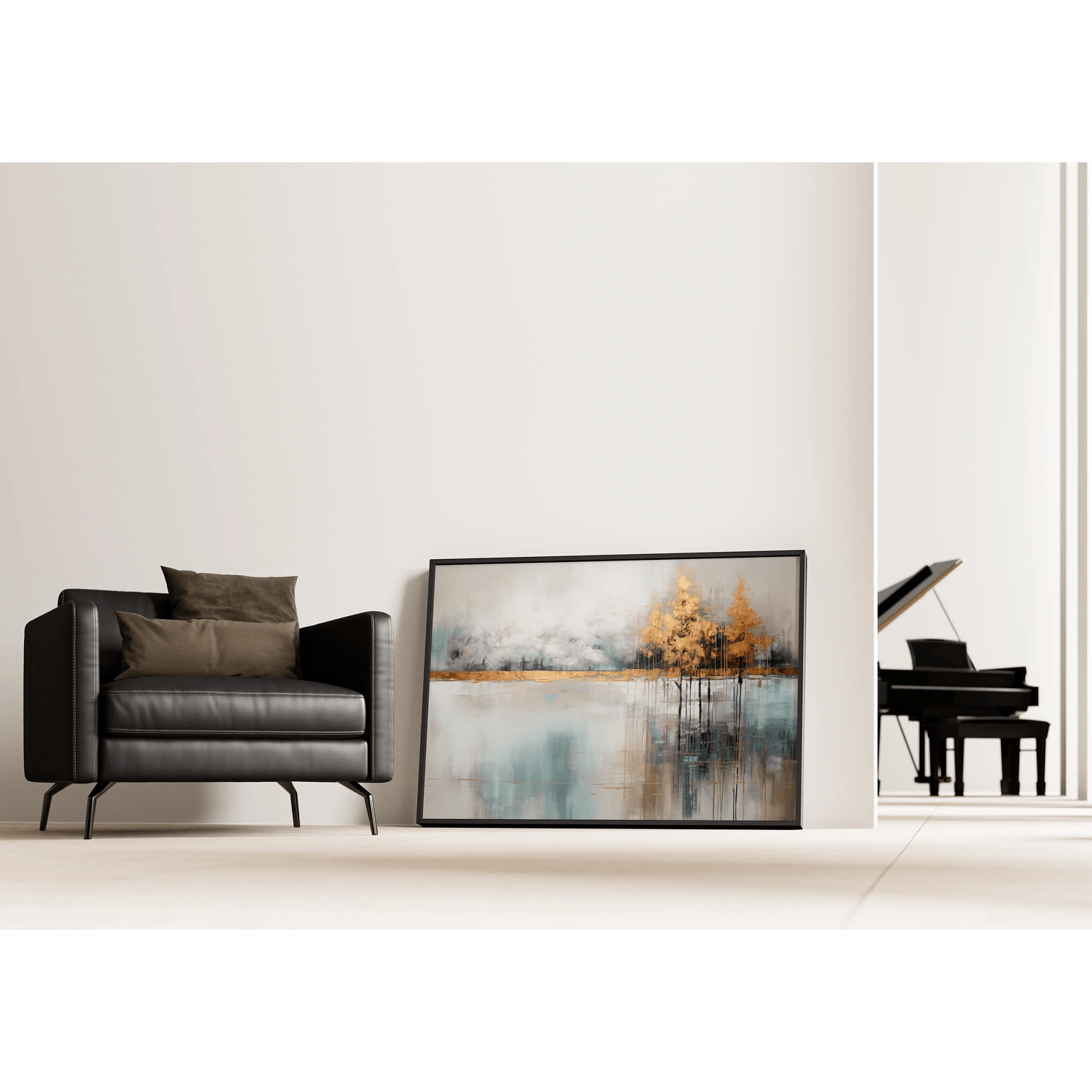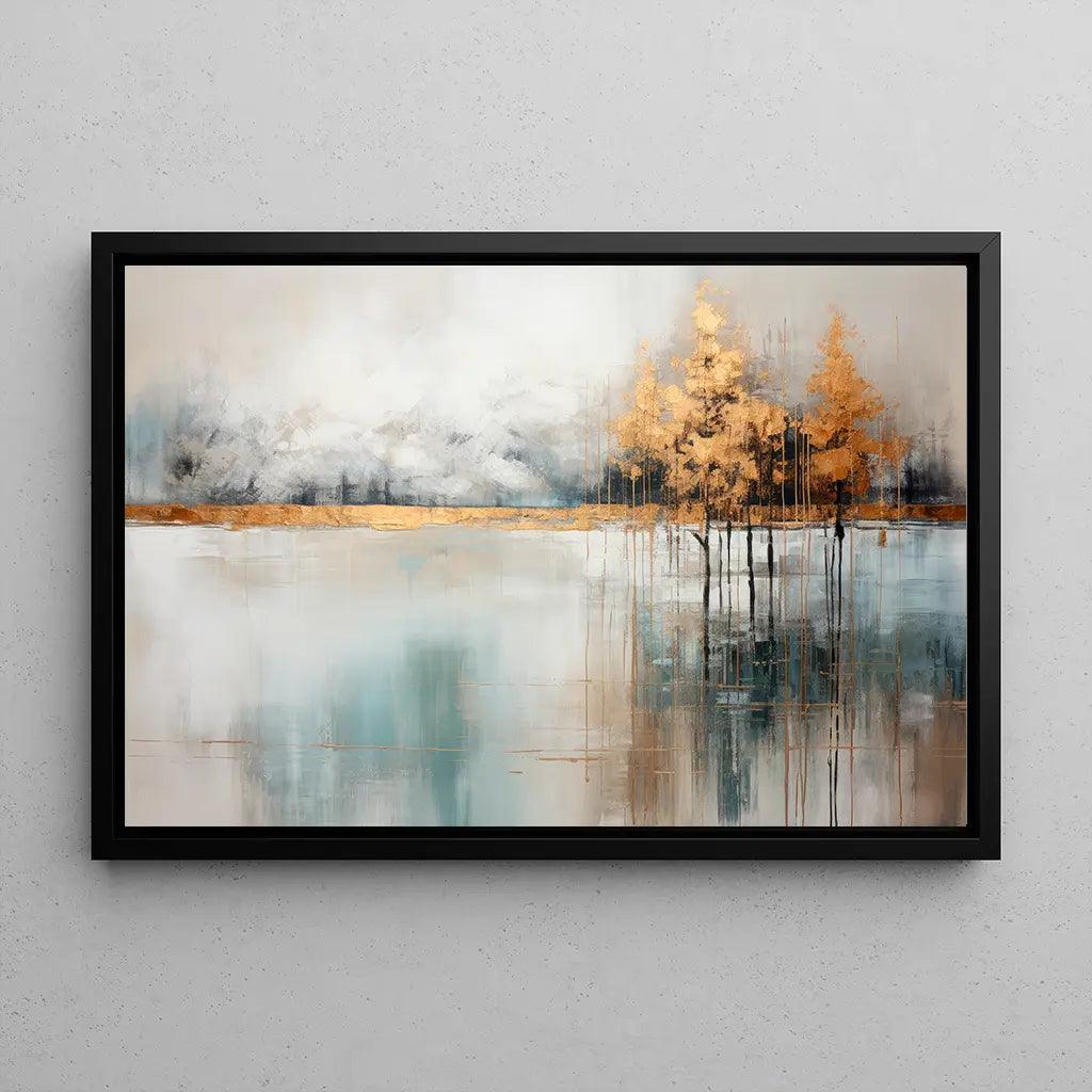 Tableau d’Art Abstrait – Murmure des Éléments | Tableau Murale Contemporain aux Teintes Douces et Détail Doré | Déco Élégante pour Salon ou Entrée | Reproduction