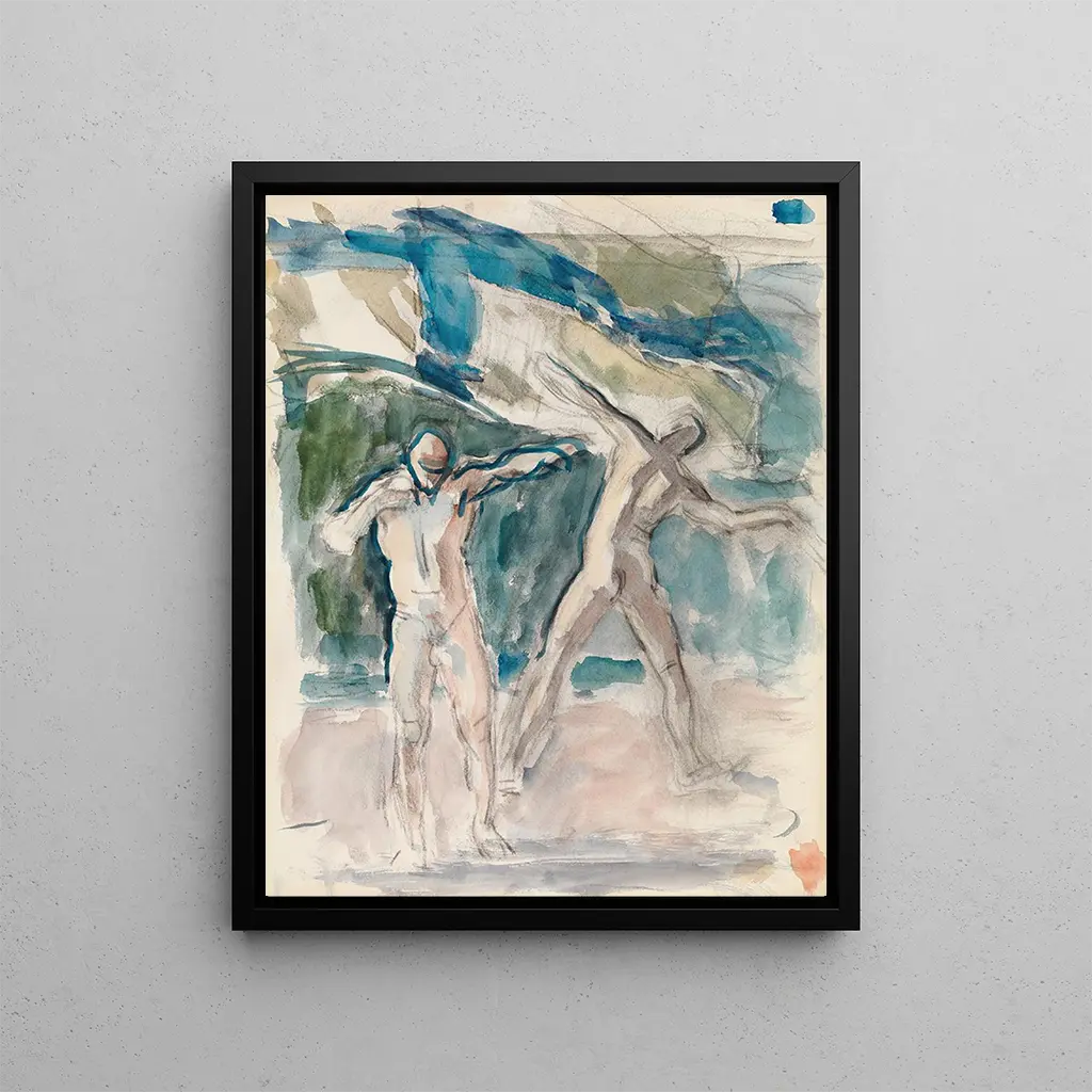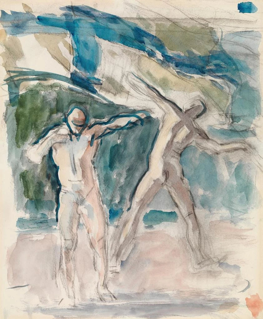 Le style de Magnus Enckell se caractérise par une fusion harmonieuse entre le symbolisme et l'impressionnisme, créant ainsi une atmosphère à la fois onirique et réaliste. Dans "Deux hommes", les contours des personnages sont délicatement esquissés, tandis que les teintes choisies évoquent une palette riche et nuancée. La lumière joue un rôle essentiel, mettant en valeur les expressions des protagonistes et suggérant une profondeur psychologique. Enckell ne se contente pas de représenter des figures ; il les anime d'une vie intérieure palpable, rendant chaque regard, chaque geste chargé de sens. Cette approche unique confère à l'œuvre une dimension presque mystique, où le spectateur est invité à s'interroger sur les émotions et les pensées des personnages, tout en se laissant porter par la beauté esthétique de la composition.