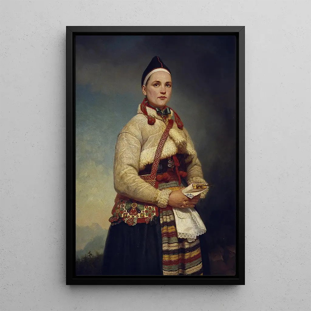 La reproduction Fille de Dalarna évoque la beauté intemporelle d’une jeune femme vêtue de costumes traditionnels suédois. Les couleurs vives et les motifs délicats de la toile capturent l’essence de la culture scandinave, tout en mettant en avant la grâce et la dignité de son sujet. Gottfrid Virgin, à travers sa maîtrise des nuances et des détails, parvient à transmettre une atmosphère de nostalgie et de fierté. Chaque élément de la composition, du fond paisible aux accessoires soigneusement représentés, contribue à faire de cette œuvre un hommage vibrant à l’héritage folklorique de la Suède.