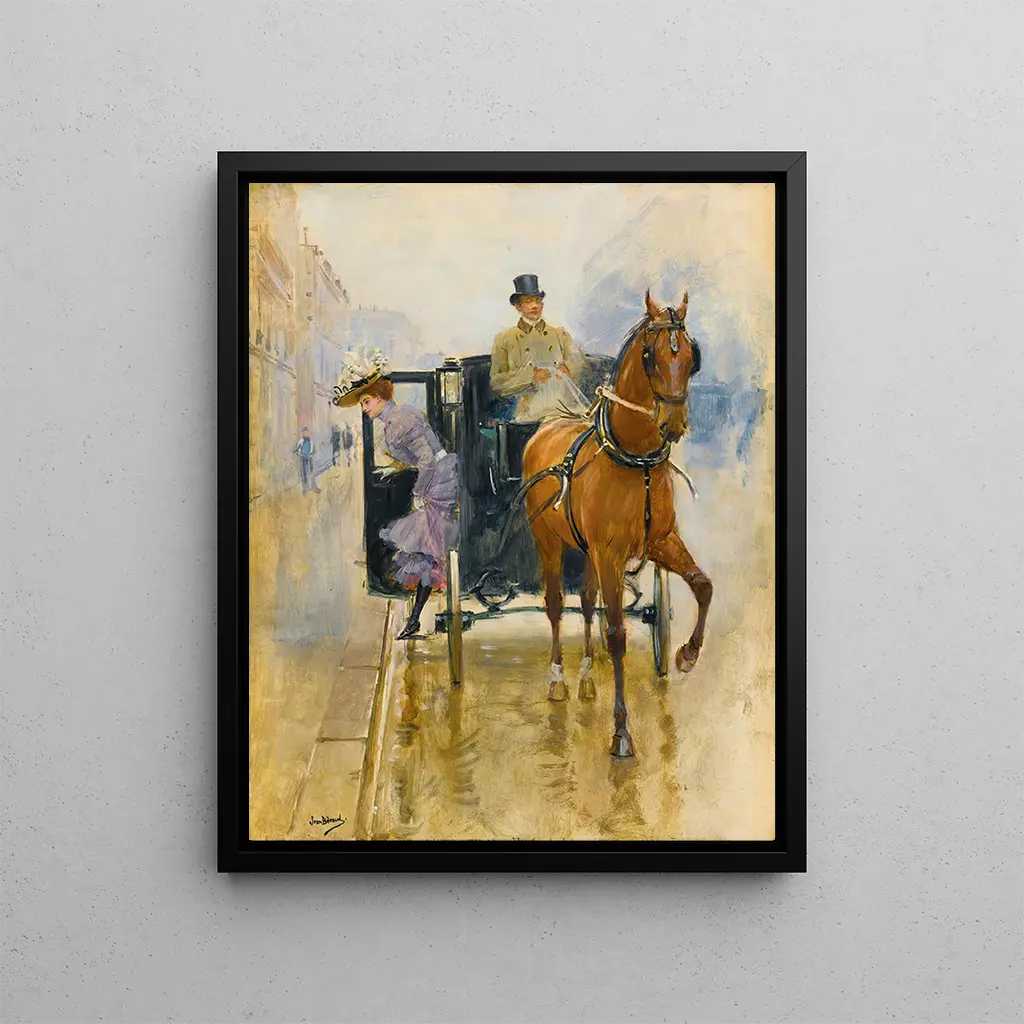Tableau Jeune femme descendant d'un fiacre - Jean Béraud | Reproduction