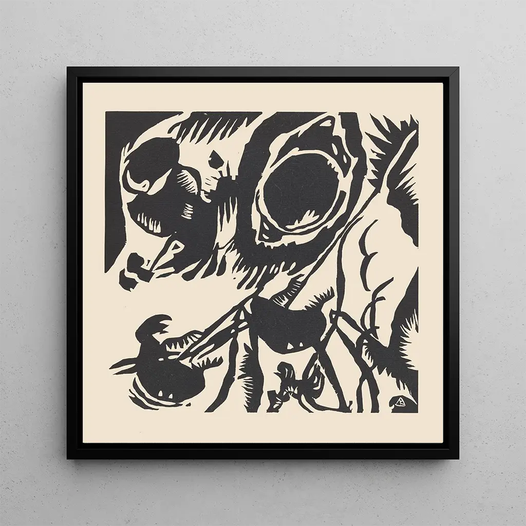 Wassily Kandinsky, figure majeure de l’abstraction et théoricien influent, a marqué l’art moderne par sa recherche des correspondances entre couleur et son. Actif au début du XXe siècle, il a contribué au développement du mouvement abstrait au sein du Blaue Reiter et a écrit des essais fondateurs sur la spiritualité de l’art. Influencé par la musique, le symbolisme et les avant-gardes européennes, Kandinsky a produit des œuvres emblématiques qui interrogent la perception et l’émotion visuelle. Le Klnge Pl08 s’inscrit dans cette continuité, illustrant son apport décisif à la notion d’art non-figuratif et à la liberté expressive.