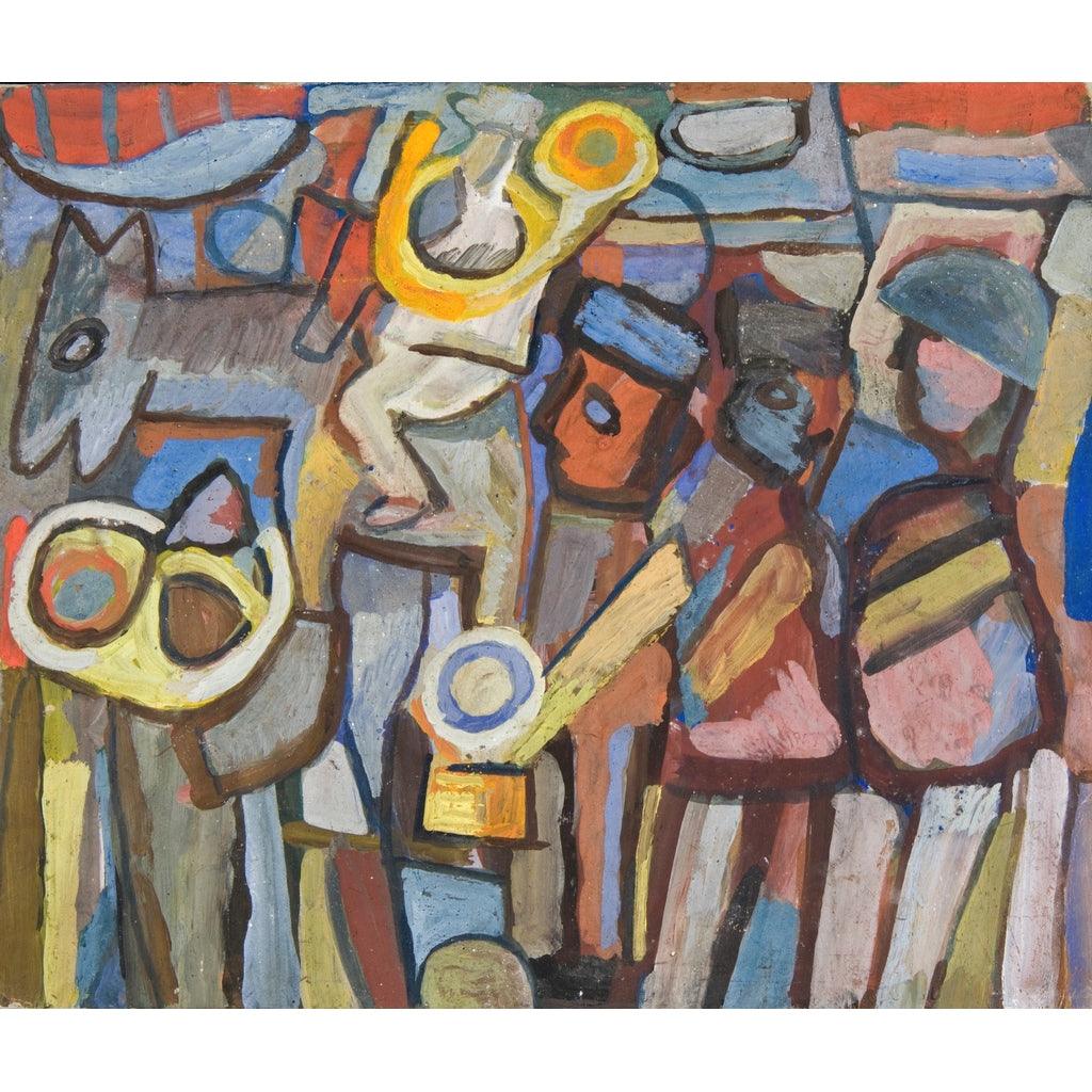 Cette œuvre emblématique, Kompozycja z Defiluj?cymi (1933), est l'une des créations les plus remarquables de Sasza Blonder. Réalisée dans un contexte où l'art s'émancipe des conventions traditionnelles, cette pièce témoigne d'une redéfinition audacieuse du réalisme. Avec un jeu d’ombres fascinant, Blonder parvient à capturer l'essence d'une époque tout en offrant une vision unique du monde qui l'entoure.