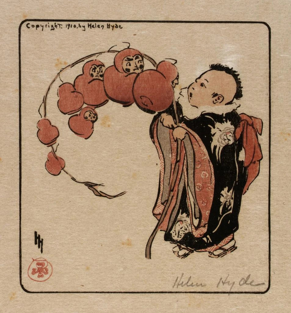 Helen Hyde, artiste américaine du tournant du XXe siècle, s’est distinguée par son adoption et son adaptation des techniques d’estampe japonaises. Formée en Occident mais profondément inspirée par le Japon, elle a réalisé des estampes et aquarelles où la précision du trait rencontre une délicatesse picturale héritée de l’ukiyo-e. Ses œuvres célèbres explorent souvent des sujets quotidiens et des figures féminines, traduisant une sensibilité intime et une maîtrise technique remarquable. En tant que lectrice d’histoire de l’art, on reconnaît chez Helen Hyde une capacité à fusionner tradition orientale et regard occidental, faisant de chaque tableau un pont culturel.