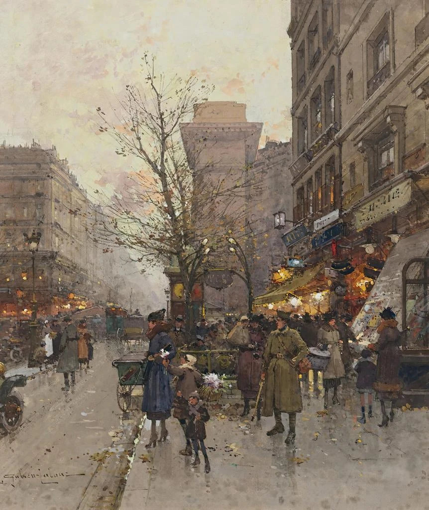 Eugène Galien-Laloue, né en 1854, est un peintre français qui a consacré sa carrière à représenter les paysages urbains et les monuments de Paris. Son œuvre s'inscrit dans le courant du post-impressionnisme, mais il a également été influencé par les techniques des impressionnistes. Son amour pour la ville lumière se reflète dans chacune de ses créations. Galien-Laloue a su s'imposer comme un maître de la peinture urbaine, et ses œuvres sont aujourd'hui prisées par les collectionneurs et les amateurs d'art. Son approche unique de la lumière et de la couleur a ouvert la voie à de nombreux artistes qui ont suivi ses traces. En célébrant des lieux embl