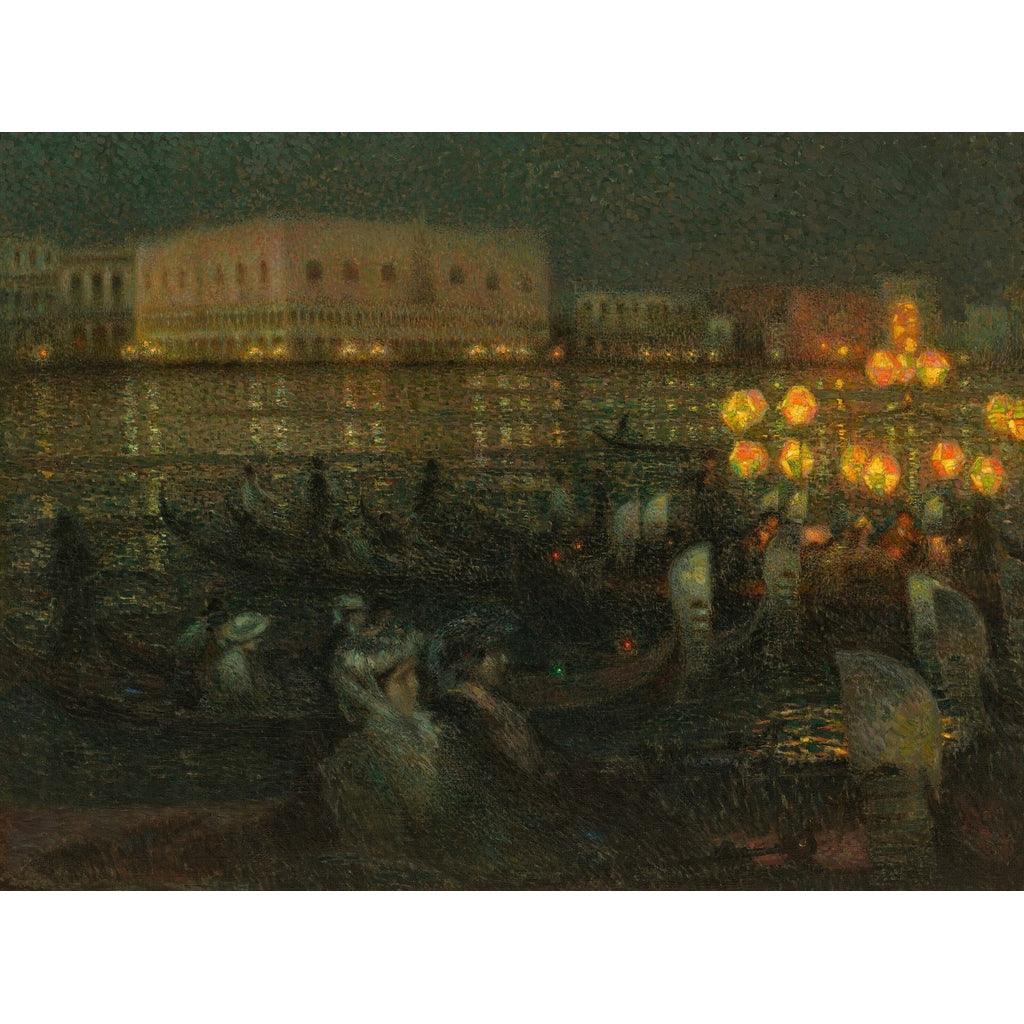 La Sérénade, Venise (1907) de Henri Le Sidaner est une œuvre qui capte l'essence même de la beauté et de la romance des canaux vénitiens. À travers cette pièce fascinante, l’artiste nous plonge dans un monde où la lumière joue un rôle primordial, enveloppant chaque détail d'une douceur presque palpable. Le Sidaner, connu pour sa capacité à capturer des moments d'intimité et de mélancolie, réussit ici à évoquer une atmosphère où le temps semble suspendu.