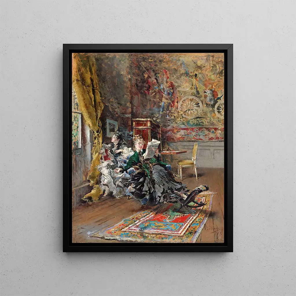 Reproduction Les Parisiennes - Giovanni Boldini – Introduction captivante Dans l'univers fascinant de l'art, certaines œuvres parviennent à capturer l'essence d'une époque tout en transcendant le temps. "Les Parisiennes" de Giovanni Boldini est l'une de ces créations qui évoque le charme et l'élégance de la Belle Époque. Ce tableau, véritable ode à la féminité et à la vie parisienne, nous transporte dans un monde où la mode et la beauté sont célébrées avec une intensité rare. Boldini, à travers sa maîtrise du portrait, réussit à immortaliser des instants de vie, des émotions et des atmosphères qui résonnent encore aujourd'hui. La reproduction de cette œuvre emblématique permet de redécouvrir la magie de Paris au tournant du XXe siècle, tout en offrant une fenêtre sur l'esprit d'une génération de femmes audacieuses et raffinées. Style et singularité de l’œuvre Le style de Boldini se distingue par sa capacité à marier réalisme et impressionnisme, créant ainsi une atmosphère vibrante et dynamique. Dans "Les Parisiennes", les figures féminines sont représentées avec une finesse exceptionnelle, chaque détail de leur costume, de leur posture et de leur expression étant soigneusement travaillé. La fluidité des lignes et l'utilisation audacieuse des couleurs évoquent le mouvement et la légèreté, comme si les personnages s'apprêtaient à s'élancer hors du tableau. Boldini excelle dans la capture de la lumière, qui joue sur les tissus et les visages, ajoutant une dimension presque vivante à ses portraits. Ce jeu de lumière et d'ombre, associé à des arrière-plans flous, crée une profondeur qui invite le spectateur à plonger dans l'univers intime de ces Parisiennes, tout en laissant place à l'imagination. L’artiste et son influence Giovanni Boldini, né en Italie et naturalisé français, est souvent considéré comme l'un des plus grands portraitistes de son temps. Sa carrière, marquée par des rencontres avec des figures emblématiques de la haute société, lui a permis de développer un style unique, alliant glamour et sensibilité. Influencé par les courants artistiques de son époque, il a su s'imposer dans le monde de l'art parisien, devenant le peintre des célébrités et des aristocrates. Son œuvre ne se limite pas à la simple représentation ; elle raconte des histoires et capture des moments de vie, révélant la