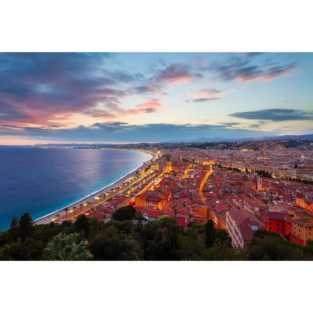 Découvrez la beauté envoûtante de la Riviera française avec notre reproduction photographique de haute qualité, "Vue Captivante au Crépuscule sur Nice". Cette image saisissante capture le panorama emblématique de Nice baigné dans la lueur dorée du crépuscule. Le ciel aux nuances délicates de rose et d'orange se reflète sur les eaux tranquilles de la Méditerranée, tandis que les lumières de la ville commencent à scintiller, soulignant le charme pittoresque des rues et des bâtiments historiques.