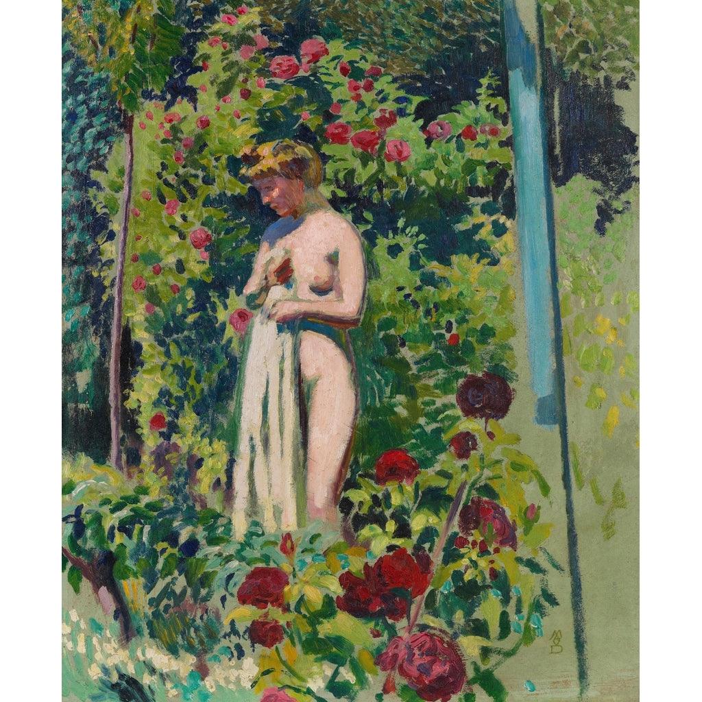 Plongez dans l'univers captivant de l'art avec l'œuvre Nymphe aux Fleurs (Nu à la Draperie, dans le Jardin) créée par Maurice Denis entre 1906 et 1907. Cette pièce emblématique se démarque dans l'histoire de l'art grâce à son exploration unique du mouvement Nabi, qui se concentrait sur l'expression d'émotions plutôt que sur le réalisme strict. Maurice Denis, un des principaux représentants de ce mouvement, a su jouer avec la couleur et la forme pour offrir une nouvelle perception de la beauté féminine et de la nature.