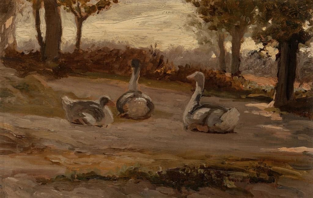 Dans cette reproduction d'Elihu Vedder, les oies semblent danser sur la surface miroitante d'un étang, créant une atmosphère paisible et contemplative. Les couleurs douces et naturelles, allant des verts apaisants aux bruns chauds, évoquent une harmonie parfaite entre les oiseaux et leur environnement. La technique de Vedder, caractérisée par des coups de pinceau délicats et une attention minutieuse aux détails, donne vie à chaque plume et à chaque reflet sur l'eau. Cette œuvre invite à la sérénité, offrant une évasion visuelle dans un monde où la nature règne en maître.