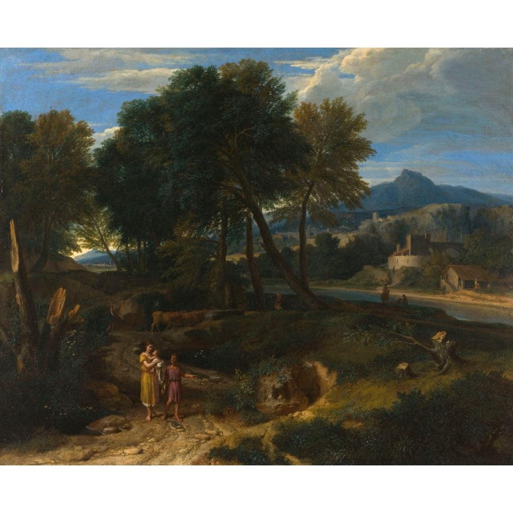 Tableau Pastorale avec un jeune pâtre et une femme avec un enfant dans les bras - Jean-François Millet | Reproduction