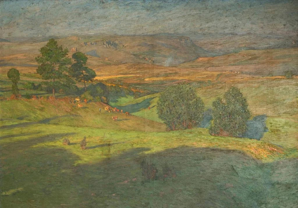 Le tableau "Paysage des Highlands au coucher du soleil" de Hans Richard von Volkmann évoque une atmosphère paisible et contemplative. Les couleurs chaudes du crépuscule se mêlent aux teintes verdoyantes des collines, créant un contraste saisissant. La technique de l’artiste, qui utilise des coups de pinceau délicats, donne vie à un paysage à la fois réaliste et poétique. Les nuages flottants et la lumière dorée du soleil couchant invitent le spectateur à s’immerger dans cette scène idyllique, où la nature semble respirer et vibrer. Ce tableau est une véritable ode à la beauté des Highlands, un lieu chargé d’histoire et de mystère.