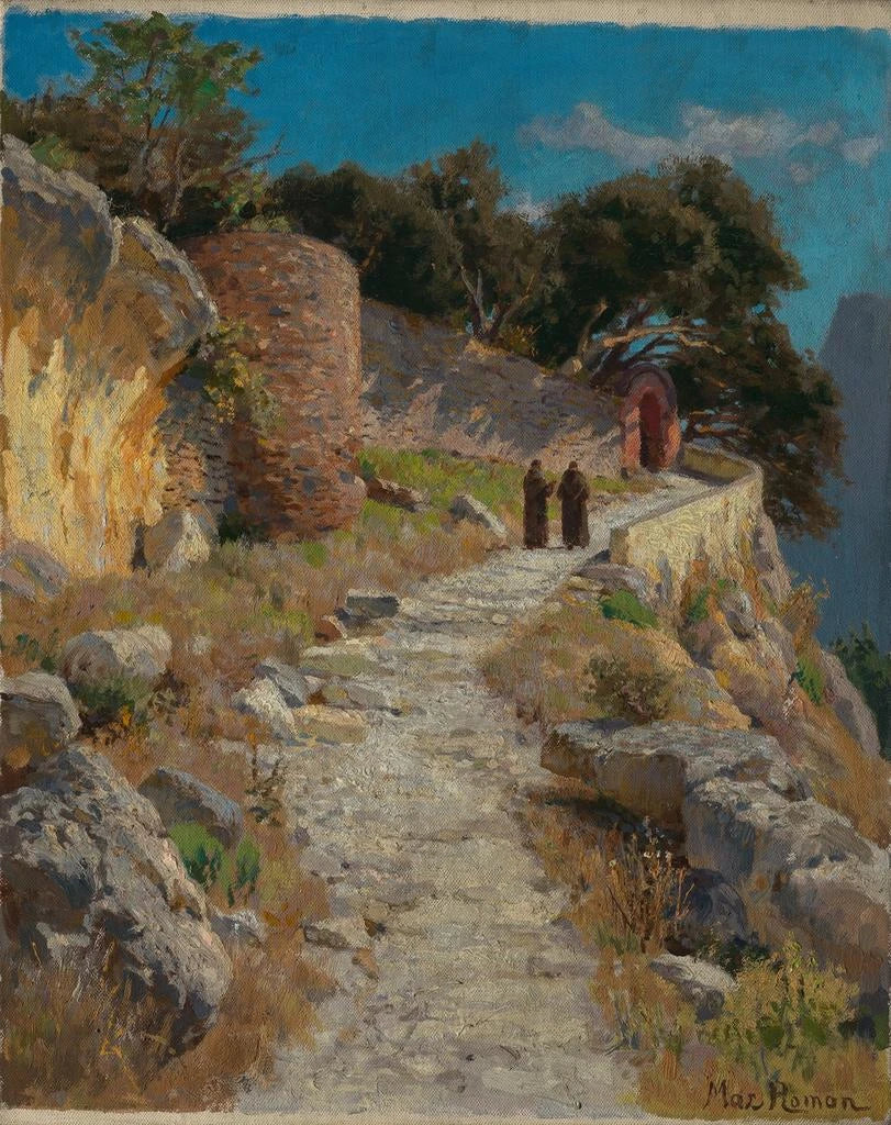 Max Wilhelm Roman, figure emblématique du XIXe siècle, a su s'imposer comme un maître du paysage. Sa capacité à fusionner des influences variées, allant du romantisme à l'impressionnisme, lui a permis de développer un style unique qui lui est propre. Roman a voyagé à travers l'Europe, s'imprégnant des différentes cultures et paysages qu'il a rencontrés, et cela se ressent dans ses œuvres. Son approche novatrice de la couleur et de la lumière a marqué ses contemporains et continue d'inspirer les artistes d'aujourd'hui. Le choix de représenter un paysage italien tout en intégrant des éléments de Munich témoigne