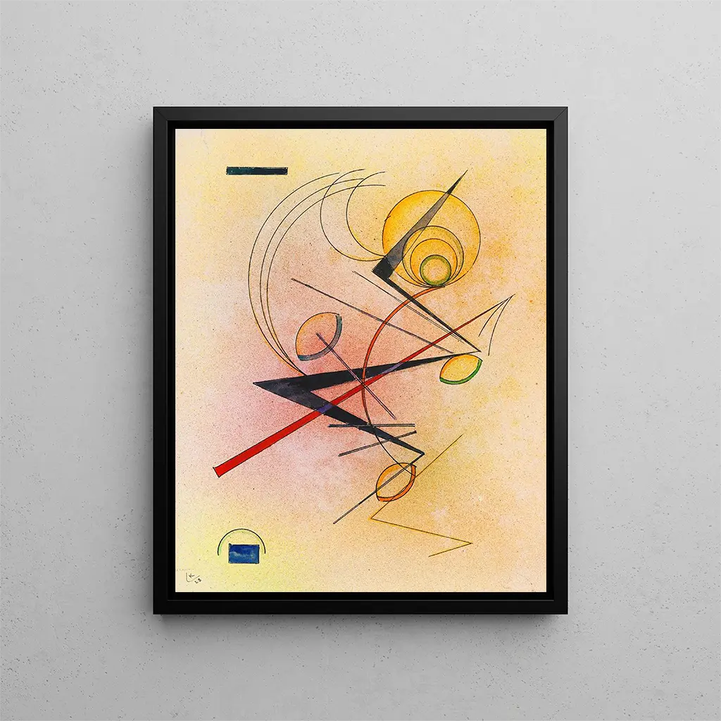 Le style de Kandinsky est marqué par une approche novatrice, où l'abstraction prend le pas sur la représentation figurative. Dans "Petit chaud", les couleurs chaudes dominent, créant une ambiance enveloppante et réconfortante. Les formes organiques et géométriques se mêlent harmonieusement, révélant une structure dynamique qui capte l'œil et stimule l'imagination. L'œuvre se caractérise par un équilibre subtil entre chaos et harmonie, où chaque élément semble avoir sa place dans un tout cohérent. Les coups de pinceau, à la fois spontanés et réfléchis, témoignent de la maîtrise technique de l'artiste tout en laissant transparaître une émotion brute. Ce mélange de rigueur et de liberté confère à "Petit chaud" une singularité qui en fait une pièce incontournable de l'art moderne.