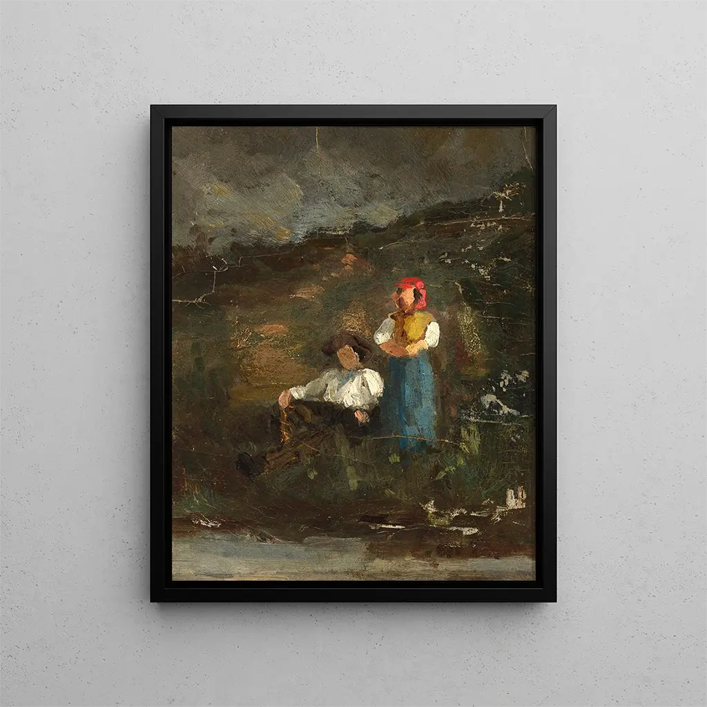 Reproduction Repos - Edward Mitchell Bannister – Introduction captivante Dans l'univers de l'art, certaines œuvres transcendent leur époque et invitent à une contemplation profonde. "Repos" d'Edward Mitchell Bannister est l'une de ces créations qui, par son atmosphère paisible et son utilisation subtile de la lumière, parvient à capturer l'essence même de la tranquillité. Cette œuvre, peinte à la fin du XIXe siècle, illustre non seulement le talent indéniable de son auteur, mais aussi une époque où l'art et la nature s'entrelacent harmonieusement. Bannister, en tant que pionnier afro-américain dans le domaine de la peinture, offre une perspective unique sur la beauté du monde qui l'entoure, rendant son travail d'autant plus précieux et pertinent aujourd'hui. Style et singularité de l’œuvre "Repos" se distingue par son style impressionniste, où les coups de pinceau fluides et la palette de couleurs douces évoquent un sentiment de sérénité. La composition met en avant une figure humaine, sereine et contemplative, placée dans un environnement naturel luxuriant. Les jeux de lumière et d'ombre, soigneusement orchestrés, renforcent l'idée d'un moment suspendu dans le temps, où le spectateur est invité à partager cette pause contemplative. Bannister excelle dans l'expression des émotions à travers des paysages, transformant des scènes ordinaires en véritables poèmes visuels. La manière dont il capte la lumière naturelle, ainsi que son approche des textures, confère à "Repos" une dimension presque tactile, rendant l'œuvre vivante et immersive. L’artiste et son influence Edward Mitchell Bannister, né en 1828 à Saint-Jean, au Nouveau-Brunswick, est une figure emblématique de l'art américain. En tant que peintre afro-américain, il a dû naviguer à travers les défis de son époque, mais sa détermination et son talent lui ont permis de s'imposer dans un milieu artistique souvent fermé. Bannister a été un membre actif du mouvement des artistes de la Nouvelle-Angleterre, et son travail a été reconnu pour sa capacité à fusionner les influences européennes avec une sensibilité américaine. Son engagement envers la représentation de la nature et des thèmes de la vie quotidienne a ouvert la voie à de nombreux artistes qui ont suivi ses traces. "Repos" est un témoignage de son héritage, une œuvre qui continue d'inspirer et de provoquer la réflexion sur