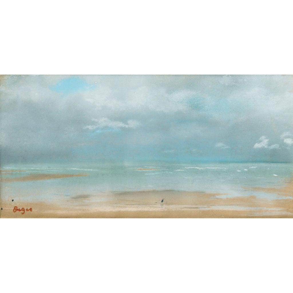 Apportez une touche de sérénité et de douceur à votre intérieur avec cette reproduction de "Plage à Marée Basse", une œuvre rare d’Edgar Degas réalisée en 1869. Connue pour son approche impressionniste et son travail sur la lumière, Degas capture ici l’atmosphère apaisante d’un littoral balayé par le vent et les vagues, dans une palette délicate de bleus et de beiges.