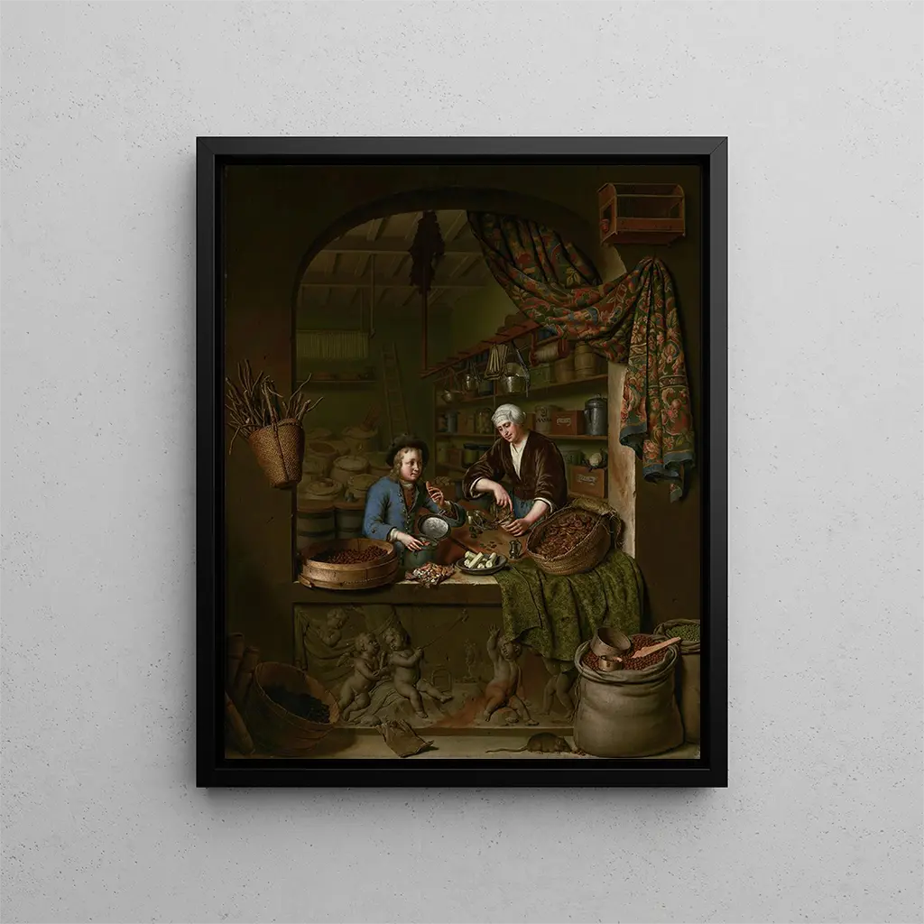 La reproduction d’Une épicerie de Willem van Mieris est idéale pour apporter une touche de raffinement classique à votre décoration. Accrochée dans une cuisine, une salle à manger ou un salon, elle met en valeur la convivialité, l’abondance et le plaisir des sens. Les amateurs de peinture hollandaise y retrouveront l’élégance des scènes de genre, tandis que les passionnés d’histoire apprécieront son témoignage unique sur le quotidien du XVIIe siècle.
