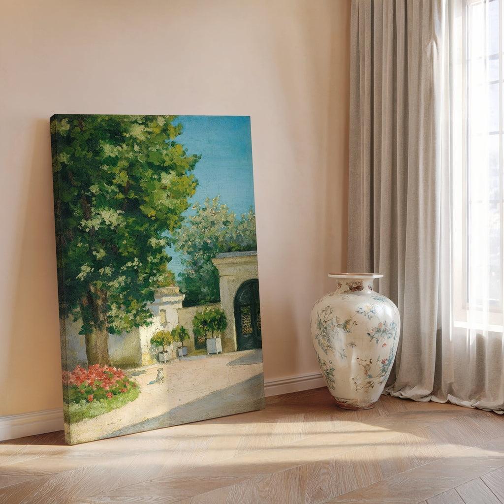 Découvrez l’élégance discrète et la quiétude d’une scène champêtre avec cette magnifique reproduction de Yerres. De L’Exèdre, Le Porche De La Demeure Familiale de notre collection de Reproductions de Gustave Caillebotte. Peint vers 1875, ce tableau offre un regard intime sur la demeure familiale de l'artiste à Yerres, où il a passé de nombreux étés. La composition lumineuse et harmonieuse capture une scène paisible d'une cour bordée d’arbres majestueux, d’un porche élégant, et d’une végétation luxuriante.