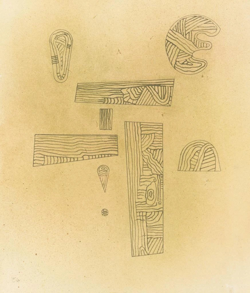 Le style de "Restes" se caractérise par une utilisation audacieuse des couleurs et des formes, typique de l'approche innovante de Kandinsky. L'artiste joue avec des tonalités vibrantes, créant un contraste saisissant qui attire immédiatement l'œil. Les formes géométriques, à la fois organiques et abstraites, semblent danser sur la toile, évoquant un mouvement perpétuel. Cette dynamique visuelle est renforcée par une composition qui, bien que complexe, parvient à maintenir une harmonie globale. Kandinsky ne se contente pas de représenter le visible ; il cherche à exprimer l'invisible, à traduire des émotions en une langue picturale. Chaque élément de l'œuvre semble chargé de signification, invitant à une interprétation personnelle et introspective.