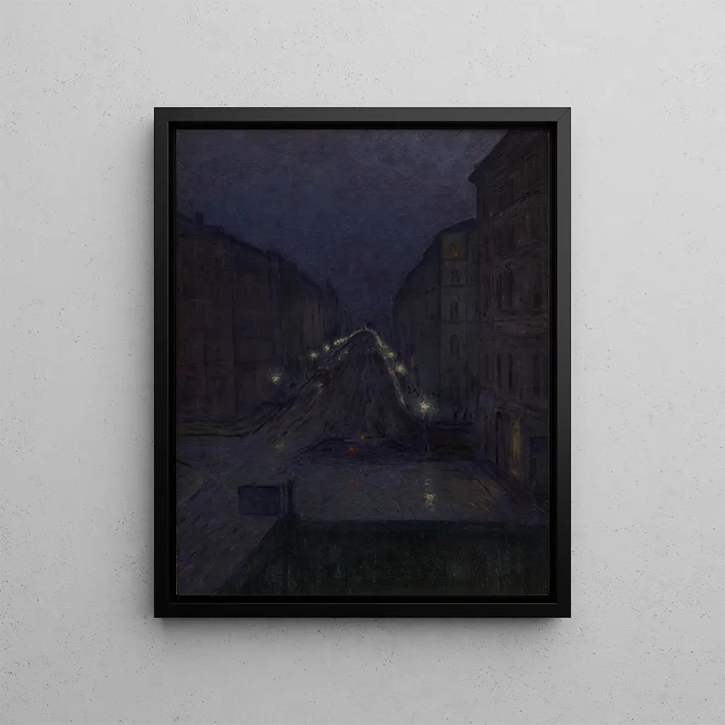 Karl Nordström est reconnu pour son approche impressionniste, qui se manifeste pleinement dans "Rue Roslag Stockholm". Les coups de pinceau rapides et fluides témoignent d’une maîtrise technique qui rend la scène presque vivante. Les couleurs, à la fois vives et subtiles, s’entrelacent pour créer une harmonie visuelle qui captive l’œil. La composition de l’œuvre, équilibrée et dynamique, guide le regard à travers les détails architecturaux et les ombres dansantes des arbres. Nordström, en véritable poète de la lumière, parvient à transformer un simple coin de rue en une scène empreinte de poésie et de mélancolie. Chaque élément de l’œuvre, du ciel aux pavés, semble raconter une histoire, celle d’une ville en perpétuelle évolution, tout en préservant son âme.
