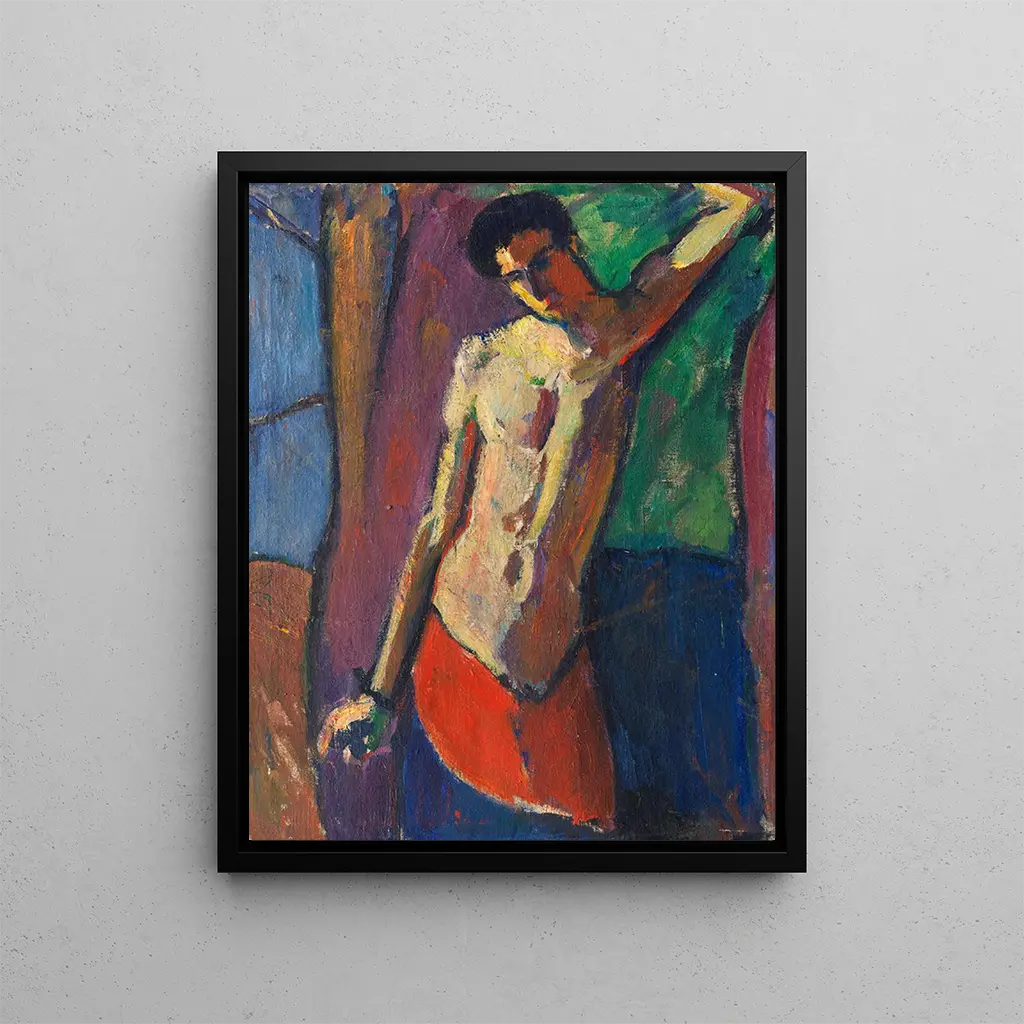 Le style d'Hermann Stenner se distingue par une approche audacieuse et innovante qui mêle les influences du symbolisme et du post-impressionnisme. Dans "Saint Sébastien", l'artiste utilise des couleurs vives et des formes expressives pour créer une atmosphère à la fois dramatique et spirituelle. Les détails minutieux du corps du saint, accentués par des jeux de lumière, révèlent une technique virtuose qui témoigne de son habileté à capturer l'essence de ses sujets. La posture du saint, à la fois vulnérable et forte, évoque une dualité fascinante, renforcée par les éléments environnants qui semblent vibrer d'une énergie palpable. Cette œuvre se démarque non seulement par sa technique, mais aussi par son message profond, qui résonne encore aujourd'hui dans notre quête de sens et de compréhension.