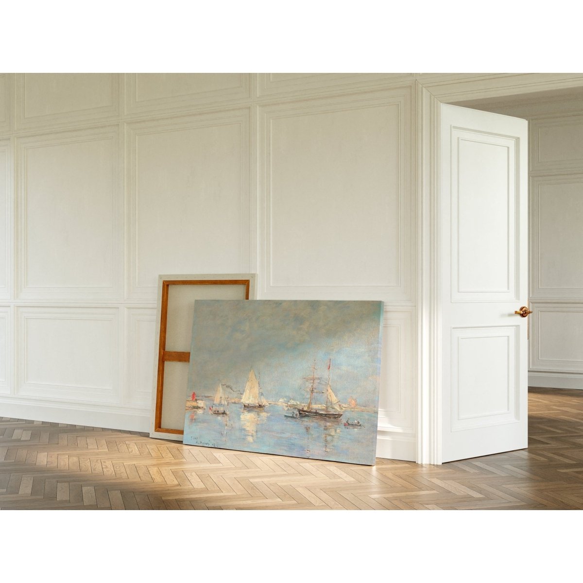 Considéré comme un précurseur de l’impressionnisme, Eugène Boudin a influencé de grands noms tels que Monet. Dans cette scène marine, on retrouve son style aérien et spontané : touches délicates, palette subtile, atmosphère apaisante.
