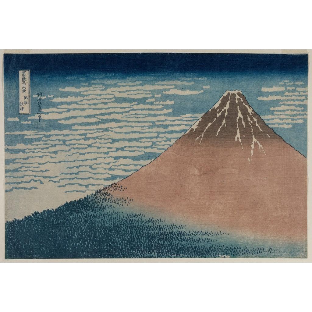 L'œuvre Vent du sud, ciel dégagé de Katsushika Hokusai, réalisée dans les années 1830, nous transporte dans une époque où l'art nippon a connu un renouveau saisissant. Hokusai, figure emblématique de l'estampe japonaise, a captivé le monde avec ses représentations poétiques de la nature. Dans cette pièce, il parvient à fusionner le mouvement et la sérénité, créant une ambiance d'harmonie. La palette subtile choisie par l'artiste met en valeur les nuages légers qui dansent au-dessus d'un paysage majestueux, tout en évoquant une profondeur presque spirituelle.