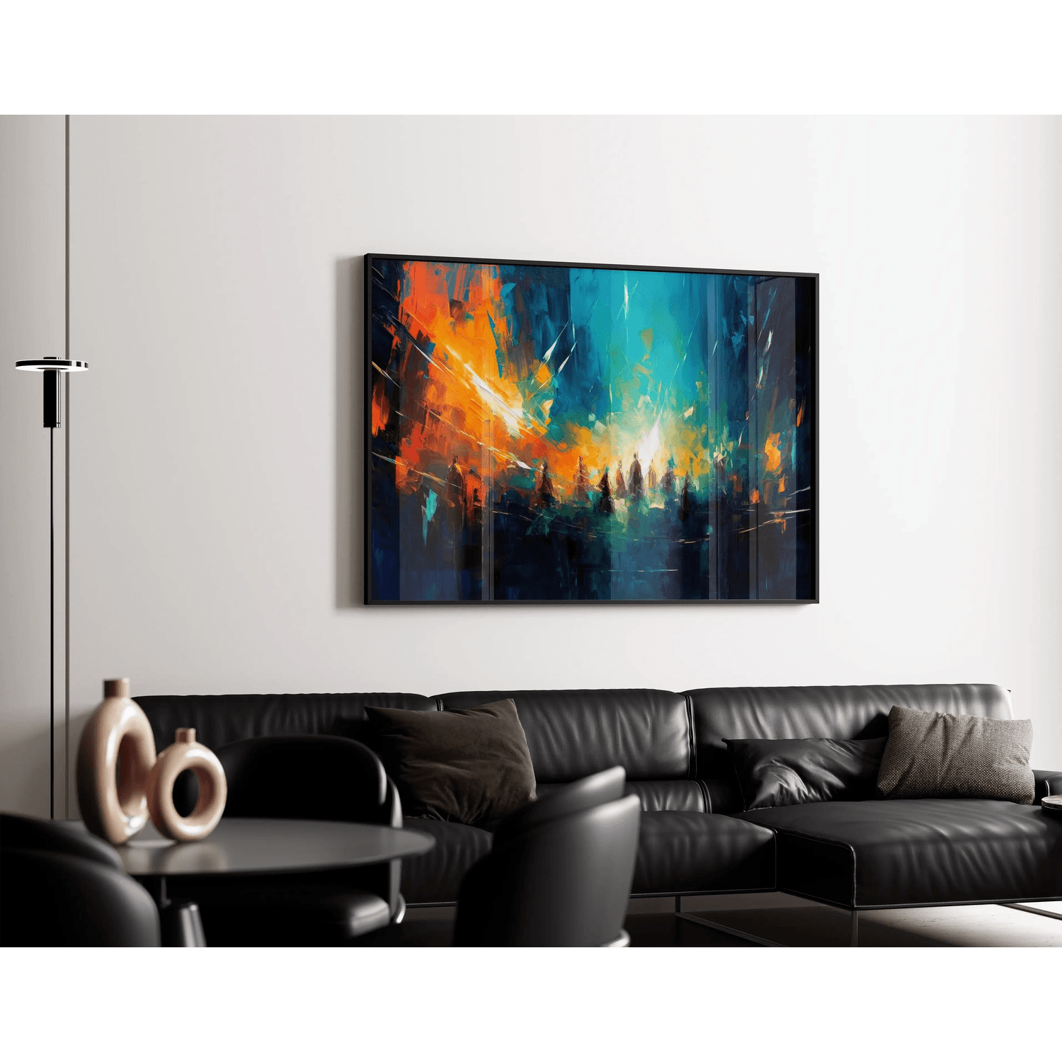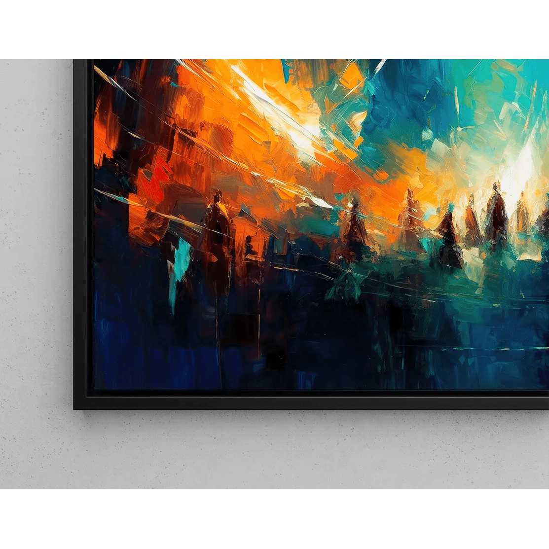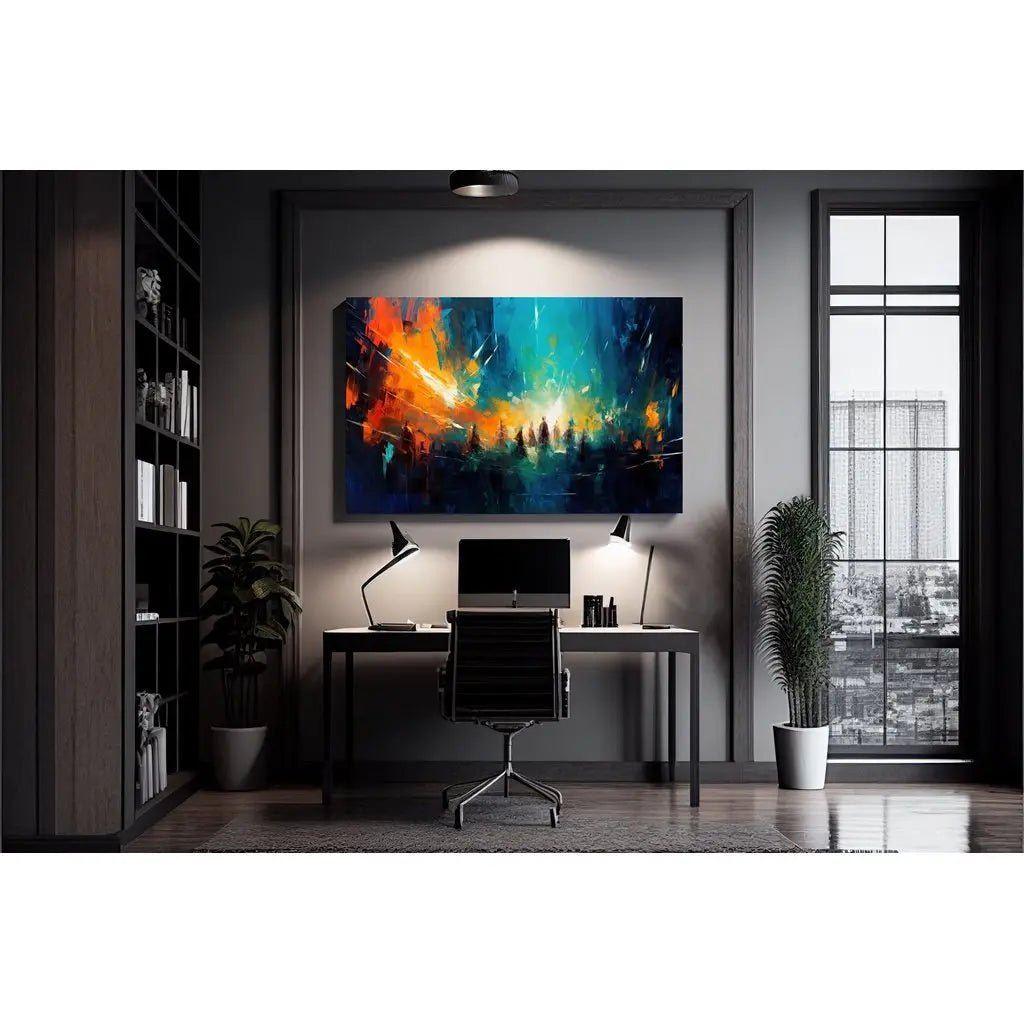 Tableau Abstrait – Convergence Chromatique | Affiche Murale Dynamique aux Couleurs Contrastées et Silhouettes Évanescentes
