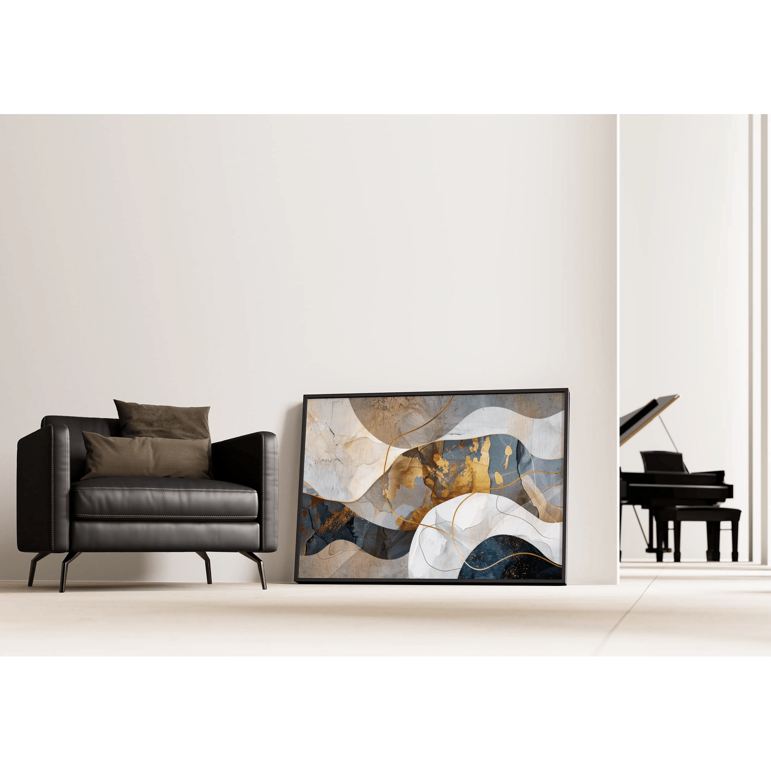 Tableau Abstrait – Fusion Minérale | Affiche Murale Élégante avec Détails Dorés et Effet Matière | Déco Luxe Moderne pour Salon ou Bureau Chic