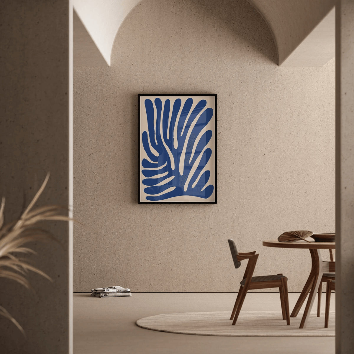 Le contraste saisissant entre le bleu intense et le fond beige confère à ce tableau décoratif un charme intemporel et élégant. Ce design minimaliste peut être utilisé pour ajouter une note de modernité et de fraîcheur à n'importe quelle pièce, qu'il s'agisse d'un salon, d'une chambre ou d'un bureau. Grâce à son caractère épuré et sophistiqué, "Vibrations Bleues" s'intègre parfaitement dans une décoration minimaliste ou naturelle, tout en offrant une touche artistique unique.