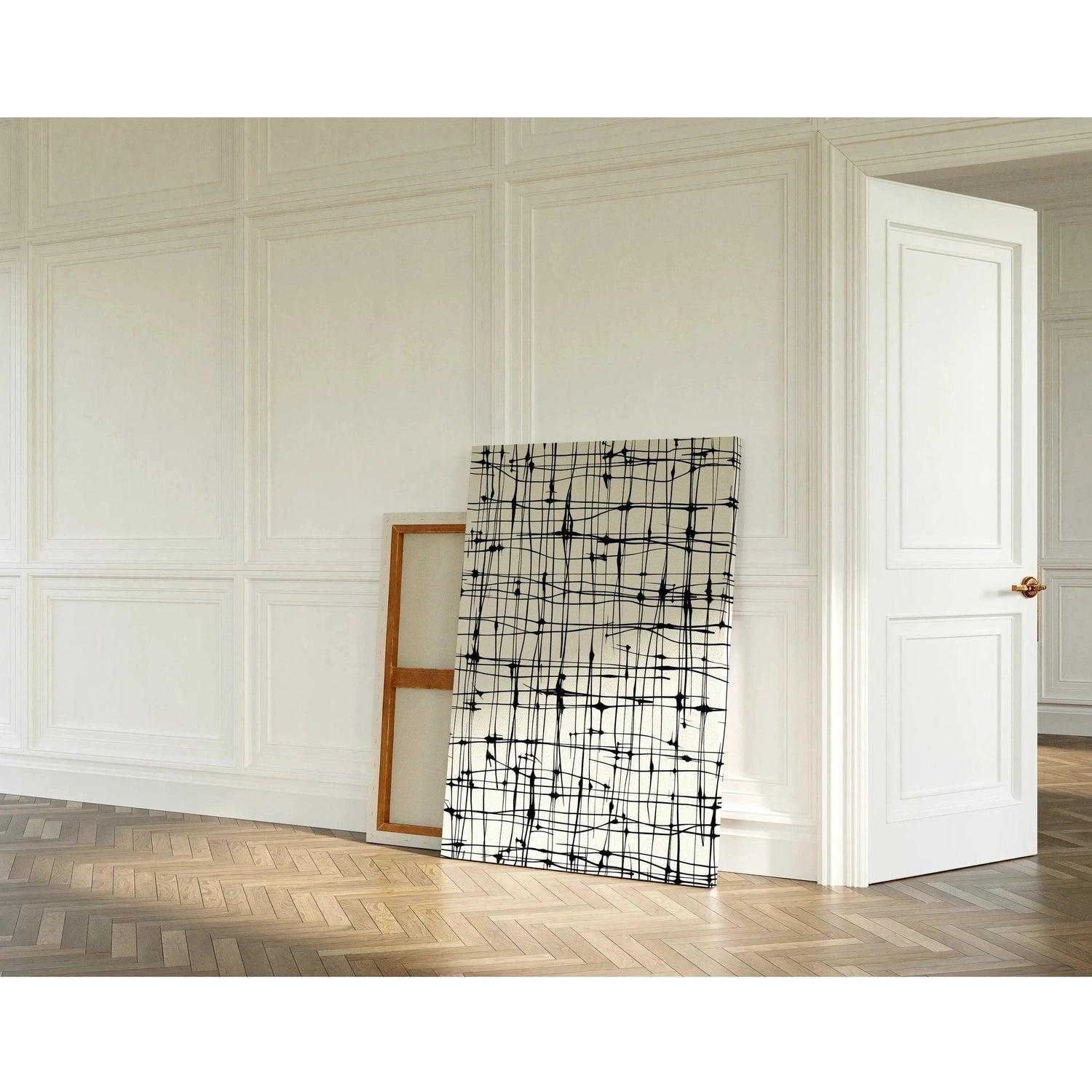 "Lignes Éthérées" se démarque par son motif complexe de lignes noires, qui se croisent et s’entremêlent sur un fond blanc immaculé. Les lignes varient en épaisseur, créant des intersections irrégulières et des formes organiques inattendues. Chaque détail de ce tableau design noir et blanc capture l'œil, incitant le spectateur à se perdre dans la profondeur et la complexité du tracé. Ce tableau est parfait pour apporter une touche sophistiquée et artistique à n'importe quel espace, qu'il s'agisse d'un salon, d'un bureau ou d'une galerie d'art.
