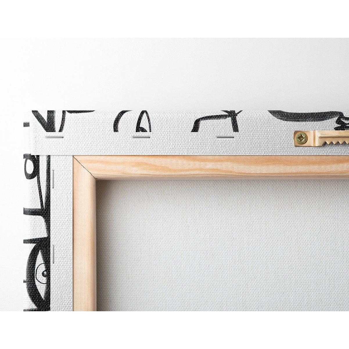 Ce motif linéaire présente une variété de visages, certains sérieux, d'autres pensifs, dans une interprétation minimaliste et artistique. La juxtaposition des traits crée une harmonie visuelle qui attire le regard, invitant à la contemplation et à l'interprétation. Chacun peut y voir une signification différente : la multiplicité des pensées, la richesse des expériences ou encore l’interconnexion des individus. Ce tableau design noir et blanc se démarque par sa capacité à raconter une histoire sans mots, à travers le langage universel de l'art.