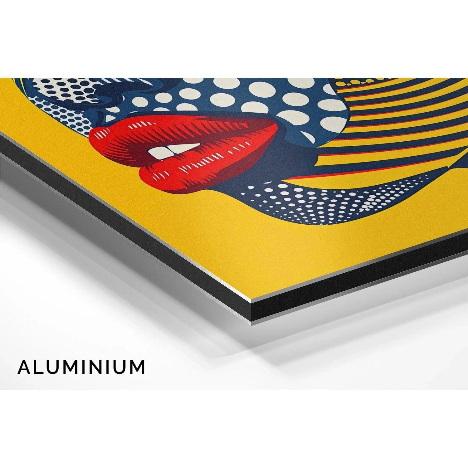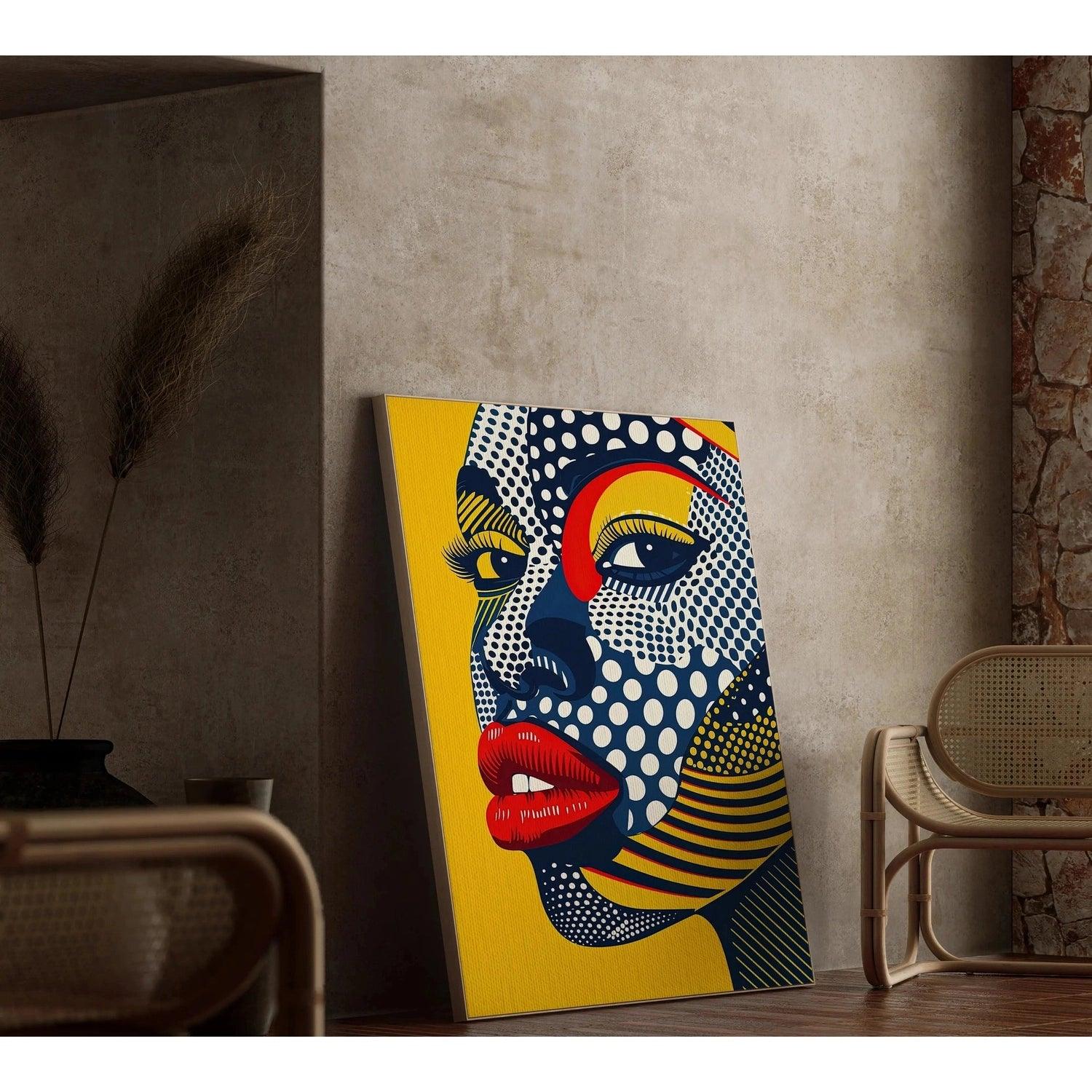 Le pop art est reconnu pour sa capacité à capturer l’essence de la culture populaire avec des couleurs saturées et des motifs géométriques frappants. "Visage Pop" ne fait pas exception avec son portrait féminin stylisé, mis en valeur par une palette de couleurs éclatantes de jaune, rouge, et bleu. Le visage, composé de motifs à pois et de lignes graphiques, évoque un mélange de style rétro et d’influence moderne.