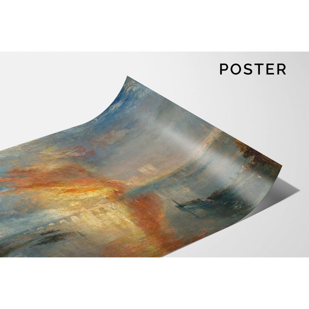 À travers des coups de pinceau audacieux et des teintes vibrantes, l'artiste parvient à évoquer non seulement la destruction physique, mais aussi l'atmosphère de désespoir et de transformation. Dans cette peinture, les flammes tourbillonnantes et les nuages de fumée s’entrelacent avec un ciel sombre, créant une composition captivante. La vision de Turner transcende le simple événement historique pour devenir une réflexion sur le passage du temps et la fragilité des institutions.