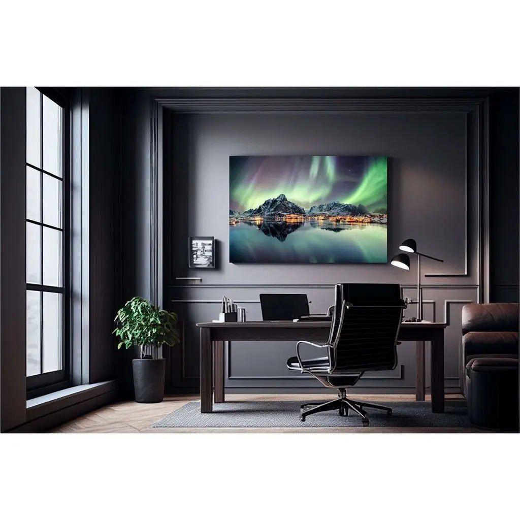 Transformez votre environnement avec ce morceau extraordinaire de l'âme des îles Lofoten et laissez la danse de l'Aurore Boréale remplir votre pièce de merveille et de tranquillité.