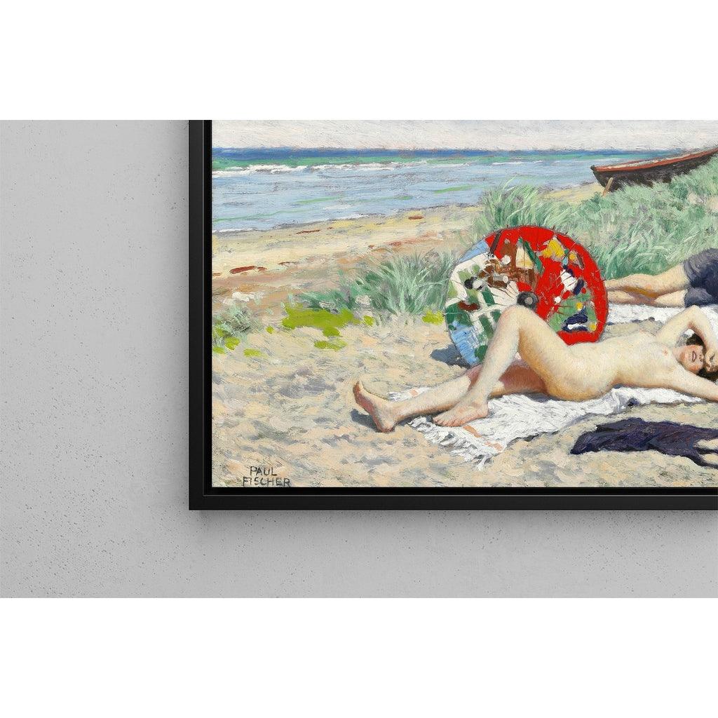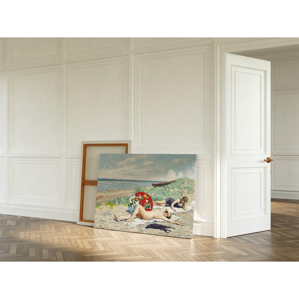 Tableau To Piger og en Japansk Parasol på Hornbæk Strand - Paul Fischer | Reproduction