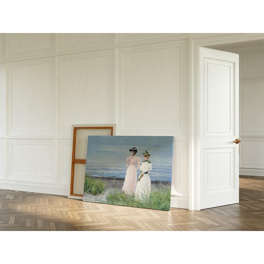 Tableau Sur la plage à Hellerup. Mlle Elisabeth Fischer et Mlle Anna Pauline Bruun un jour d'été sur la plage à Hellerup - Paul Fischer | Reproduction