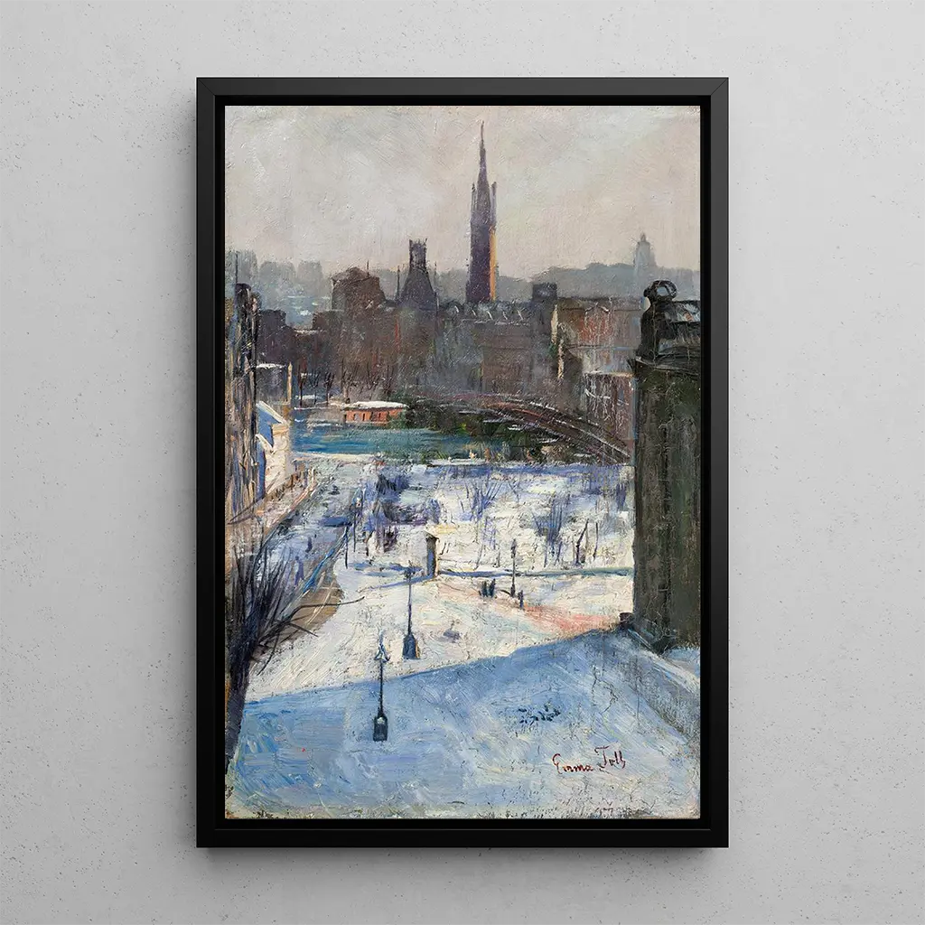 La reproduction de la toile "Vue de Riddarholmen" transporte le spectateur au cœur de Stockholm, où l'harmonie entre l'eau et l'architecture se dévoile avec délicatesse. Les nuances de bleu et de gris se mêlent pour créer une atmosphère paisible, tandis que les reflets dans l'eau ajoutent une dimension presque onirique. La technique de l'artiste, à la fois précise et fluide, capte la lumière d'une manière qui évoque les heures dorées du jour. Chaque détail, des voiles des bateaux aux façades des bâtiments, contribue à une composition qui invite à la contemplation et à l'évasion.
